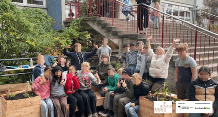 Durch die Förderung des Bundesministeriums für Bildung, Familie, Senioren, Frauen und Jugend im Programm „Demokratie leben!“ konnten wir im Rahmen unserer „Initiative Grüne Schulhöfe“ ein partizipatives Projekt an der Grundschule im Moselviertel verwirklichen. Ziel ist es, gemeinsam mit Kindern grüne Lern- und Aufenthaltsräume zu gestalten und das Bewusstsein für Natur und Nachhaltigkeit zu stärken.