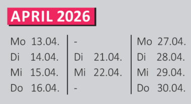Jeder Workshoptag geht von 9:00 – 15:00 Uhr.